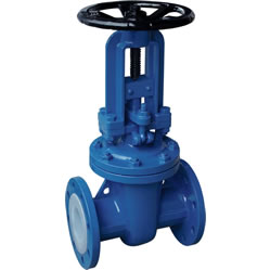 Z41F46 型 PN16、PN25 氟塑料衬里楔式闸阀:手动、法兰连接、明杆楔式刚性单闸板,阀座密封面材料为聚四氟乙烯,公称压力 PN16~PN25,阀体材料为灰铸铁衬氟塑料的闸阀。