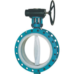 D341F4-10 型蜗杆传动衬氟蝶阀适用于各种不同类型工业管道中液体和气体(包括蒸汽)的输送,特别是具有严重腐蚀性介质的使用场合,如:硫酸、氢氟酸、磷酸、氯气、强碱、王水等具有强腐蚀性的介质。