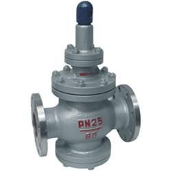 Y43H-25 型先导活塞式蒸汽减压阀:法兰连接形式、活塞式结构形式,阀座密封面材料为 Cr13 系不锈钢,公称压力 PN25,阀体材料为 WCB 的蒸汽减压阀。