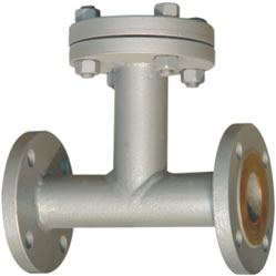 ST16C、ST34C 型 T型过滤器是管道输送液体过程中清除固体杂质的设备。液体流经过滤器时,其中的杂质被滤出,可保护机泵、压缩机、仪表和其它设备正常工作。当需要清洗时,只要将可拆卸的滤筒取出,去除滤出的杂质后,重新装入即可,使用维护极为方便。